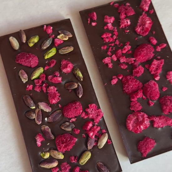 Raspberry Dark Chocolate Bar and Raspberry Pistachio Dark Chocolate Bar